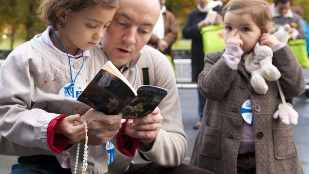 I have noticed over the years that the Rosary’s long intro is dreaded by children — and by some adults, too. So I was liberated when St. John Paul II wrote, “In different parts of the Church, there are many ways to introduce the Rosary. In some places, it is customary to begin with the opening words of Psalm 70: ‘O God, come to my aid; O Lord, make haste to help me ’… In other places, the Rosary begins with the recitation of the Creed” (No. 37).