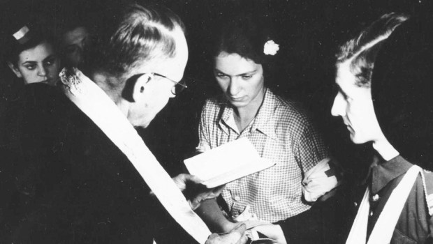 Father Paul understood that it was necessary to celebrate the Holy Mass the following day, because, as he stressed himself, he was aware of the great significance it had for the insurgents. But there was a serious problem: they ran out of hosts. There was not a piece of bread at hand. Father Paul considered the possibility of getting into the ruins of the Holy Trinity Church under the cover of darkness in order to find the hosts. At that time, he was called to a severely wounded soldier in whose cloak a prayer book was found with a piece of Christmas wafer [oplatek, a large wafer made from the same mixture as communion hosts, with symbols embossed into it and shared, sometimes even saved, at holidays – Ed.] in it. The following morning Father Paul, using this wafer, celebrated the Eucharist for the insurgents. It was the last Mass in the Czerniaków district during the uprising.