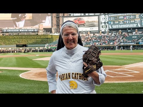 We couldn’t possibly hit that pitch. Could you?Last August, Sister Mary Jo Sobieck of the Dominican Sisters of Springfield donned her Marian Catholic jersey and took the mound to throw out the ceremonial first pitch. There before a crowd at Guaranteed Rate Field, home of the Chicago White Sox, Sister Sobieck threw out a monster of a curve ball that captured the attention of baseball fans everywhere, as it went viral.