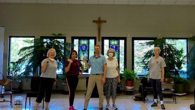 Clark is “Silver Sneaker” certified, which means the classes he leads can even be covered by Medicare when he offers them at gyms. Participants can also sign up for further training beyond what’s offered at the parish. Clark even leads classes in people’s homes and at Asheville Catholic School.