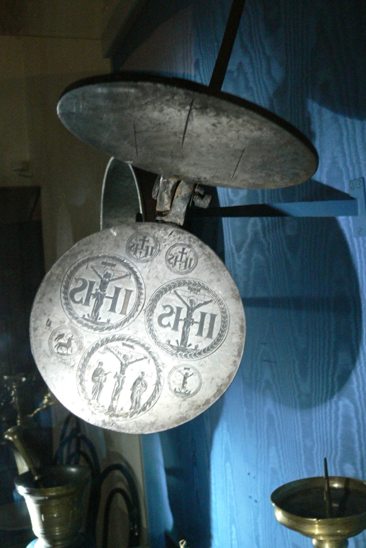 As early as the 9th century, Europeans began to use communion wafer irons (fer à hosties) to bake the Eucharistic hosts used in Mass. These molds were made up of two iron plates with long handles. The plates were often engraved with a cross, an image of Jesus, or the Crucifixion. A batter made of flour and water was poured between the plates, and the wafers were cooked over an open fire.