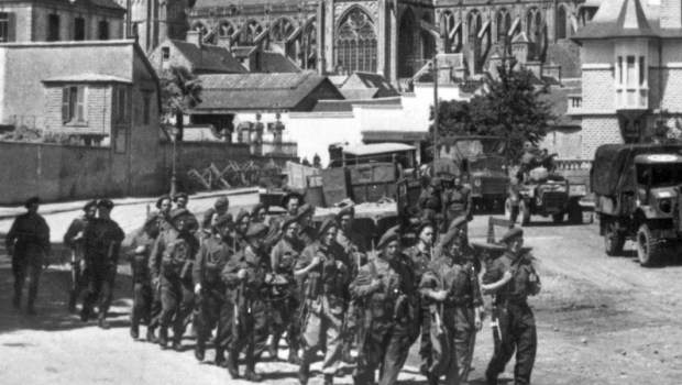 Having been assigned to ministry on the Isle of Wight for several years (after leaving the Abbey of Solesmes), Fr. Aubourg spoke English very well. Therefore he was quick to announce to the British officers that the Germans had left the city.