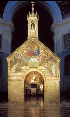 He soon returned to Assisi to repair the church of San Damiano and later two other dilapidated country churches in the valley, St. Mary of the Angels and St. Peter in Spina.