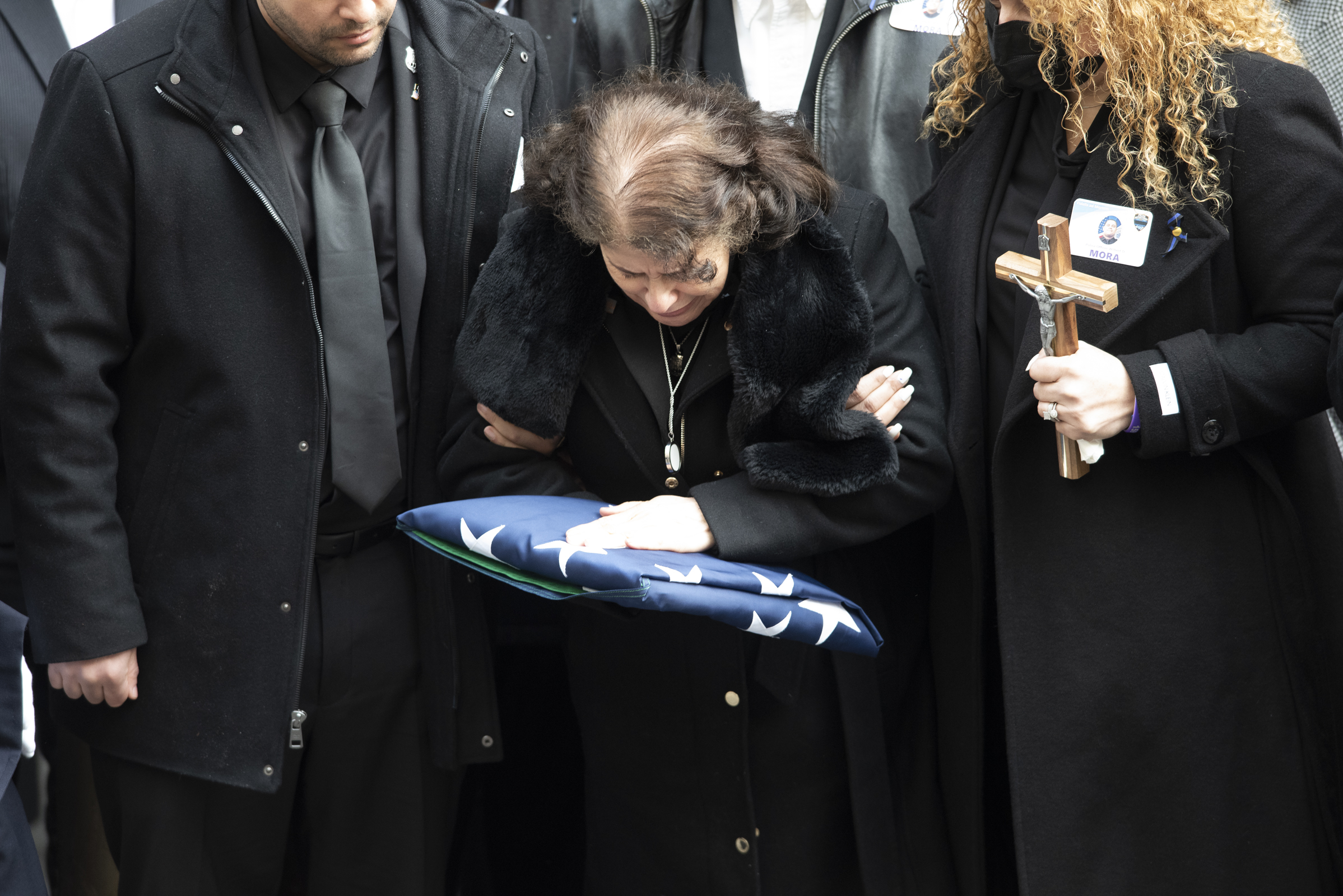 A sea of officers, stretching down Fifth Avenue, stood at attention as Officer Mora’s casket was carried down the steps of St. Patrick’s at the conclusion of the funeral.