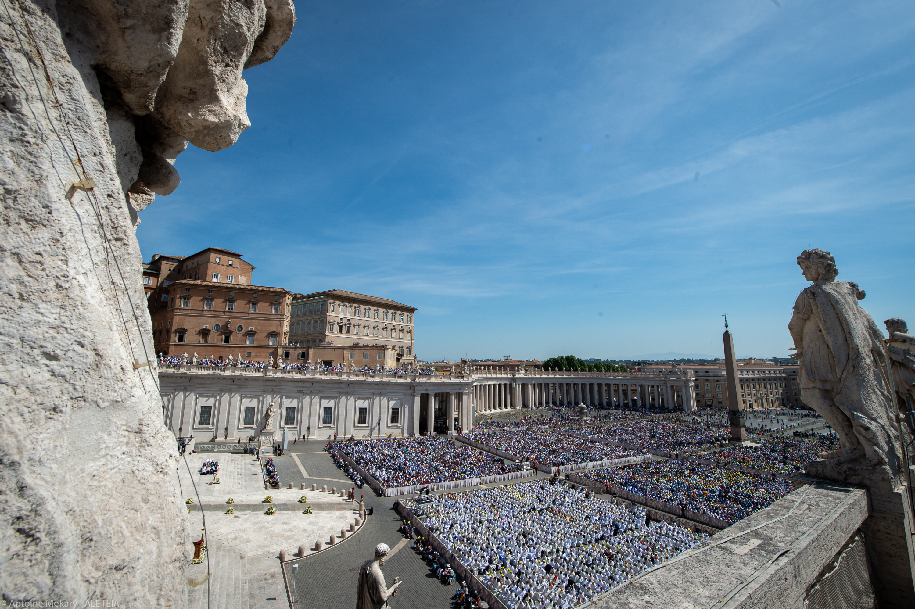 As he did on Easter Sunday, the pontiff made an effort to walk through the square to greet the cardinals present. He then passed through St. Peter's Square in a popemobile. This was the 12th canonization Mass of his pontificate celebrated in St. Peter's Square, and the 15th in total, including the canonizations celebrated during his trips to Sri Lanka, the United States and Portugal.