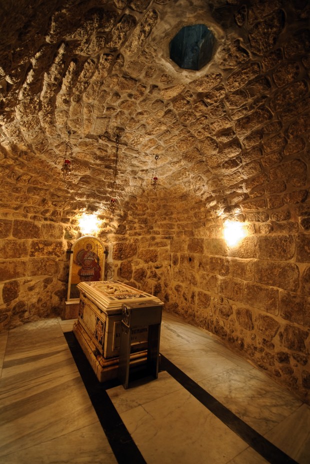 The tomb, nevertheless, is empty, as the relics of the saint were spread all over the Christian world when the Sassanids took over the place in 614.