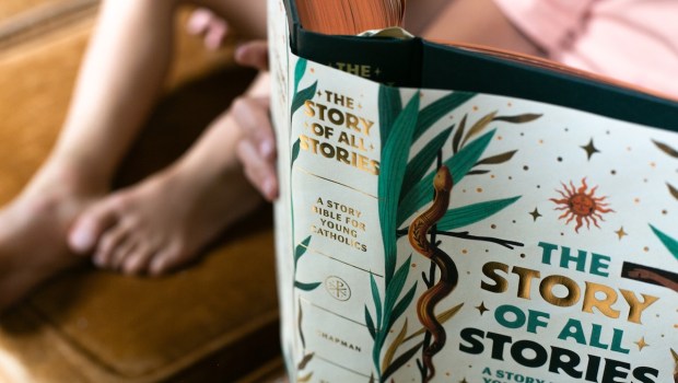 The Story of All Stories: A Story Bible for Young Catholics, by author Emily Stimpson Chapman and Illustrator Diana Renzina, truly checks all of this Catholic mom’s boxes.