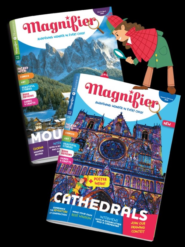 Each magazine will center around a specific theme (the first 48-page edition centered on cathedrals) and the content will help kids to understand and appreciate a particular facet of our Catholic Church. Upcoming themes include mountains, bread, the first Christians, castles, and the Three Wise Men.
