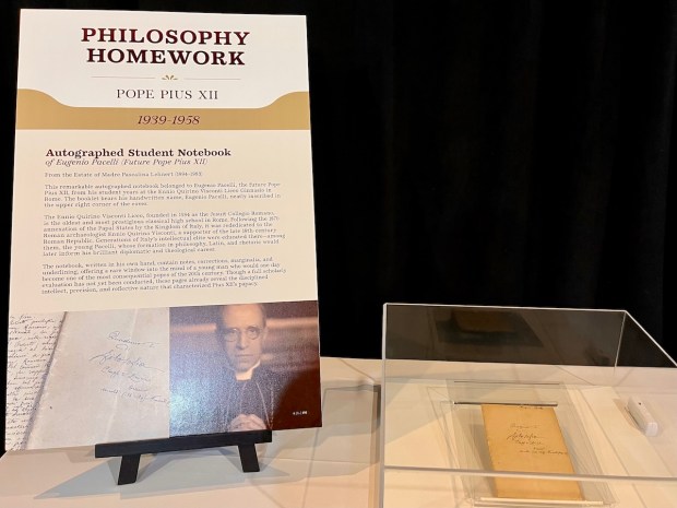 The papal relics and saints’ relics show the humanity of these holy men and women, the priest reflected. They didn't start off as saints or popes. For example, the collection includes a philosophy assignment from Eugenio Pacelli, the future Pope Pius XII.