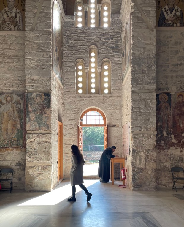When I went there, the monastery was almost empty. A Korean traveler was trying to understand the inscriptions by scanning them into Google Translate, and a Japanese man seemed to be listening to something that only silence could convey. And then there was an Orthodox priest, with a long beard and black robes, who greeted us. His name was Menas.
